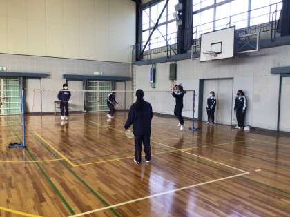 3年生の保健体育科の授業の様子です。バドミントンをしています。今日はペアを組んで試合をしていました。