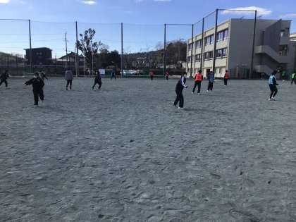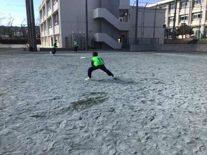 保健体育科の授業の様子です。1,2年生が運動場でアルティメットに取り組んでいました。