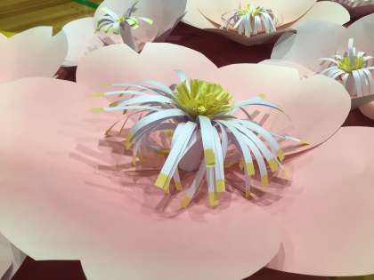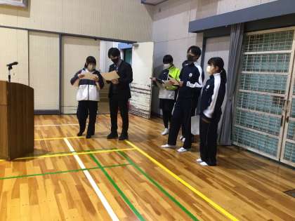 体育館では、進行の打ち合わせをしています。会場の飾りつけづくりも進めています。