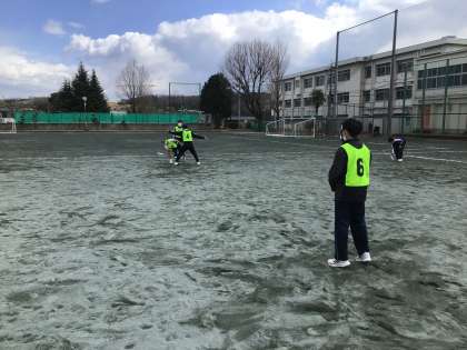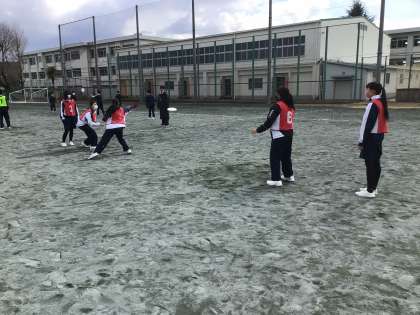 アルティメットに取り組んでいます。ディフェンスからのプレッシャーをフェイントでかわし、パスをする練習をしていました。