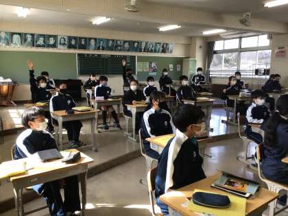 1年生の音楽科の授業の様子です。民謡について学習していました。「ソーラン節」の曲が流れてきたら、「小学校の時に踊ったのと違う」という声があがっていました。