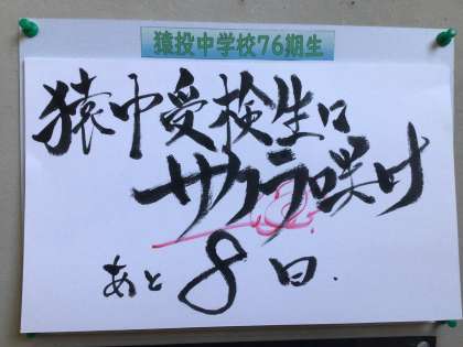 今日は公立高校の一般選抜の検査日です。今までの努力の成果が発揮できるように落ち着いて臨んでください。みんながあなたを応援しています。