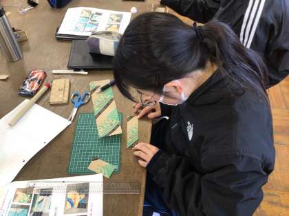廃材を使ってのものづくり。SDGsを意識した授業です。