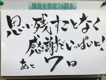 3年生の掲示板です。今日は公立高校のAグループの面接検査日です。卒業まで、数えられるくらいになりました。