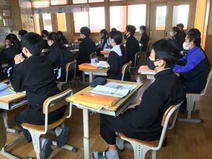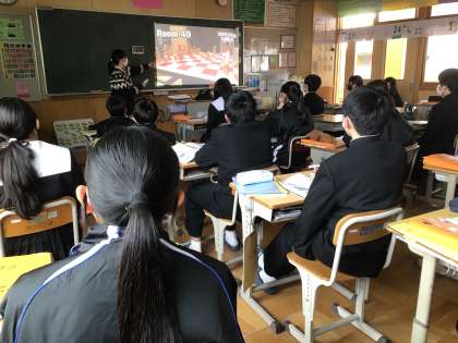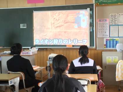 1年生の英語科の授業の様子です。大英博物館の映像を使って学習を進めていました。