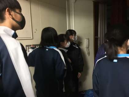 卒業生を送る会の準備の様子です。今日は、会の流れを確認するため、リハーサル形式で進めていました。体育館の窓や扉を換気のために開けていましたので、少し寒い中でしたが、1・2年生は、心が燃えているようでした。