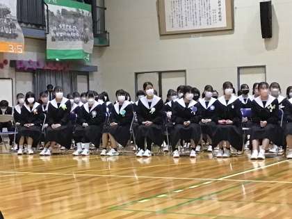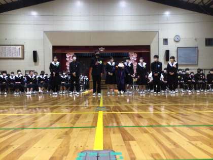 3年生から1,2年生に向けて代表生徒が話しています。3年生は、後輩の気持ちを考え、感謝の言葉を話してくれました。先輩からの「ありがとう」ほどうれしいものはないと思います。後輩に対する配慮、さすが3年生です。