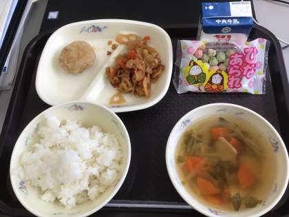 今日の給食は、「ひなまつり献立」でした。3年生は、給食を食べる回数もあと2回となりますね。
