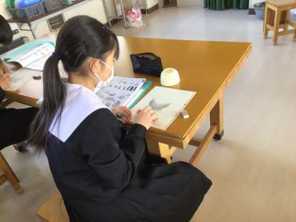 1年生の美術科の授業の様子です。立体感を表すことをテーマに、球体を描いていました。