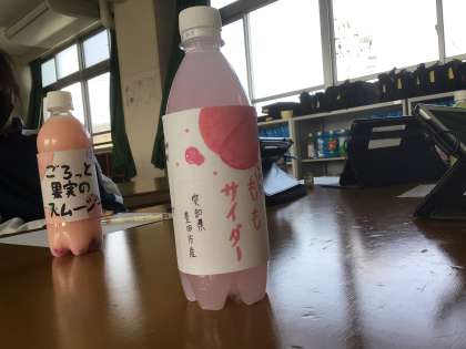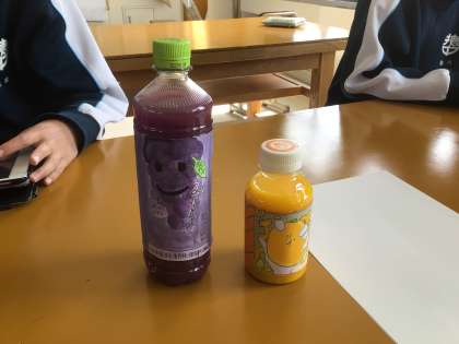 2年生の美術科の授業の様子です。飲料水を入れるボトルのラベルのデザインを考えていました。中身は絵の具で作った色水です。飲みたくなります。