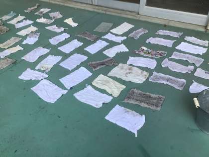 3年生が教室のワックスがけで使用したぞうきんを、3年生の先生方が洗って干していました。きれいにしてくれた3年生の生徒に感謝をしながら、作業をしていました。