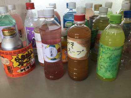 2年生の教室には、美術科の授業で作った作品を飾ってあるクラスがありました。思わず、飲みたくなりました。