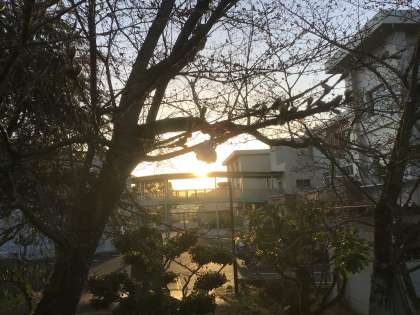正門東側にある「さくら」です。咲き始めました。春の足音が聞こえてきました。