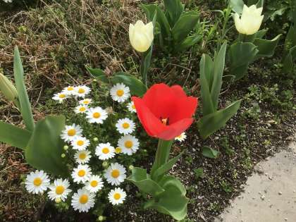 ハピスマの畑の横にある花壇に、きれいな花が咲いていました。元気いっぱいの花です。