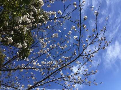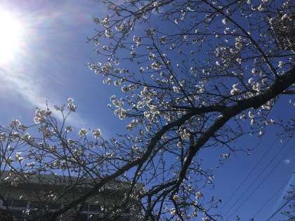 本校のさくらの開花の様子です。自転車置き場のさくら、正門横のさくらです。