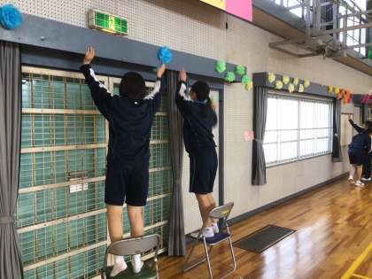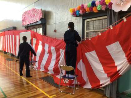 3年生が入学式会場の片付けをしていました。