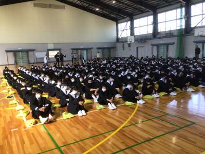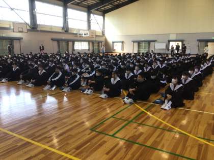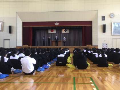 2,3年生が合同で集会をしていました。今年度、猿投中学校に赴任された方が自己紹介をしていました。