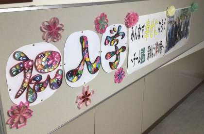 各学年の掲示板です。入学、進級を祝う内容です。