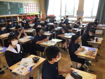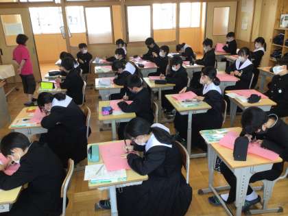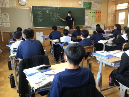 1年生の授業の様子です。家庭科と数学科の様子です。数学科は「正の数・負の数」について学習していました。