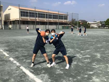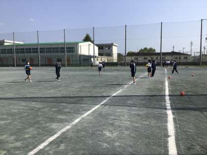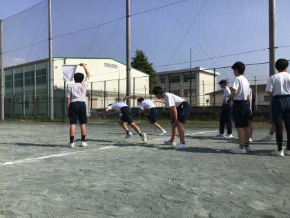 3年生が午後の授業で、スポーツテストの測定をしていました。今日は、気温がぐんぐんと上がり、外の活動は、汗ばむくらいでした。生徒は、元気に運動していました。