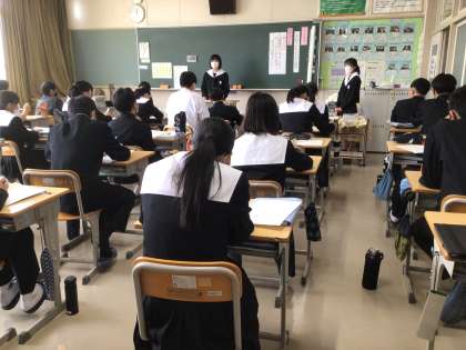 3年生の国語科の授業の様子です。自分の名前を使って、自己紹介スピーチをしていました。
