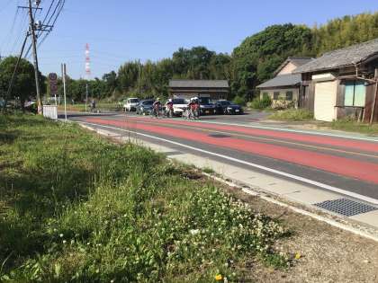 5/10(水)の乙部ヶ丘地区の生徒の登校の様子です。通勤の自動車も多いため、安全に気をつけて登校しています。