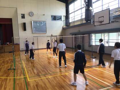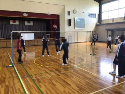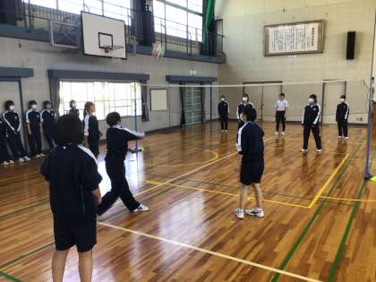 3年生の保健体育科の授業の様子です。バレーボールの試合をしていました。