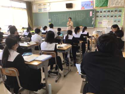 3年生の国語科の授業の様子です。論語を取り上げて学習しています。私たちの生活の中にも、論語の考えが生きている部分もあります。今日取り上げていたものの中に、自分が深く考えて学ぶことも大切であるが、他の考えも深く学ぶことも必要であるというものがあります。独りよがりになってはだめということです。