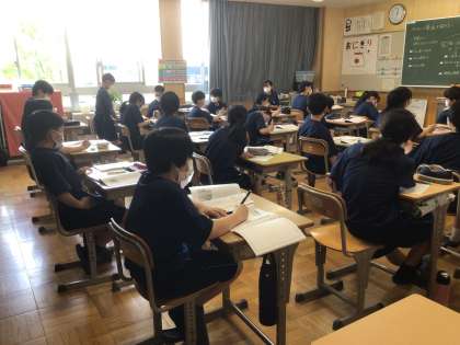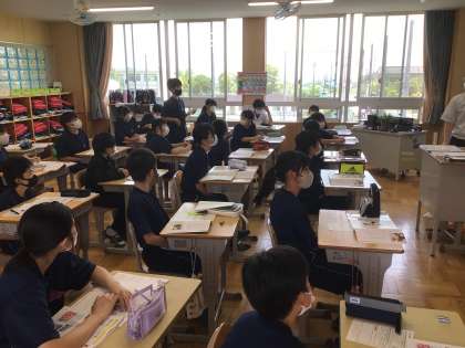 1年生の道徳科の授業の様子です。困難を乗り越えるために必要なことを話し合っていました。「サッカーの漫画を描きたい」という教材を使って授業を進めていました。この教材は、サッカー漫画の作家である高橋陽一さんの話を中心に作られています。好きなものなら困難を乗り越えると思うという意見や、誰かの役に立つと考えたら、あきらめずにかんばることができるという意見が出ていました。