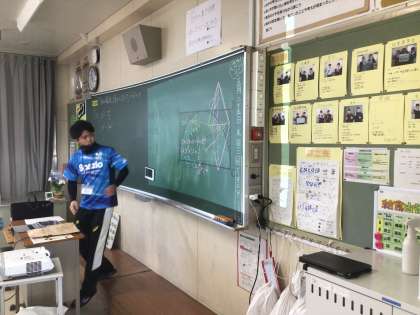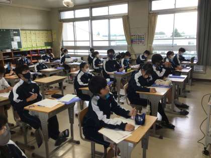 2年生の数学科の授業の様子です。プロジェクターを活用し、黒板との併用を工夫して授業を進めていました。各教科で、ICT機器の活用について、効果的な方法を学びながら、授業を工夫しています。