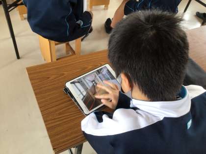 2年生の美術科の授業の様子です。スケッチ画を奥行きの感じられるものにするためのポイントを学習用タブレットのアプリを活用して学習していました。
