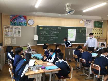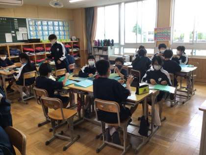 1年生の総合的な学習の時間の様子です。地域に着目した内容を学習しています。今日は、子ども服を回収するためには、どんな場所がいいのかをテーマに、学習用タブレットの地図を使って考えていました。1年生は、SDGsの視点と家庭科の学習との連携を図りながら、教科横断的に学習を進めていく計画です。今後の生徒の学びの発展が楽しみです。