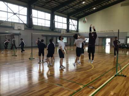 3年生の保健体育科の授業の様子です。バレーボールの授業もいよいよ終盤になっています。アタックとブロックを練習していました。