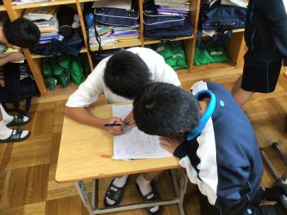 1年生は中学校へ入学して、初めての定期テスト(前期中間テスト)です。学習範囲が広いため、復習することが多くて大変だったようですが、精一杯取り組んでいます。次のテストの教科のポイントを見直していました。