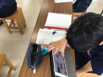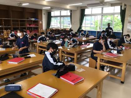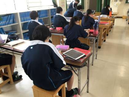 1年生の美術科の授業の様子です。「自分の名前のロゴデザイン」を考えています。学習用タブレットで参考となりそうな資料を検索しながら、複数のデザインを描いていました。完成が楽しみですね。