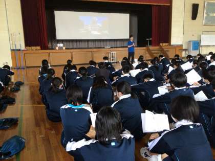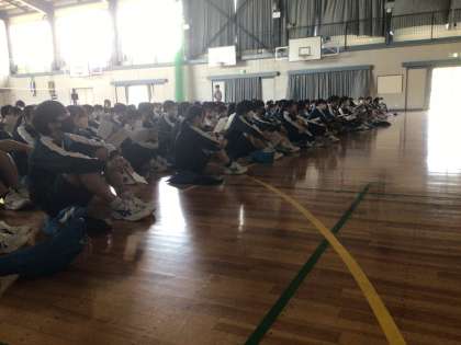 3年生は明日から修学旅行です。学年集会で、最後の確認をしていました。天候が少し心配ですが、思い出深い旅行にしてほしいと願っています。