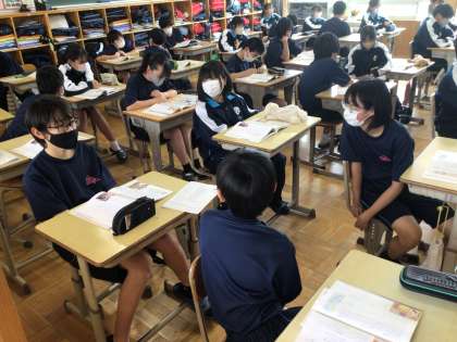 1年生の道徳科の授業の様子です。「違いを乗り越えて」という教材を通して、多文化の理解を深めるためにどんなことを考えるべきかについて話し合っていました。班で話し合いを進めたり、ロールプレイングの手法を活用して、気持ちを考えさせたりと工夫して授業を進めていました。