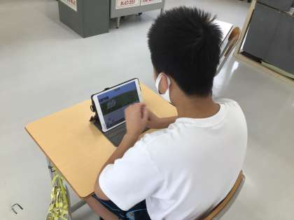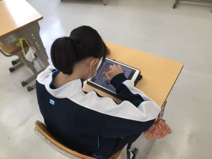 ハピスマの授業の様子です。学習用タブレットを活用して、学習しています。今日から3年生が修学旅行に出かけているので、いつもより少ない人数での生活です。