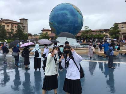 あいにくの天気ですが、ディズニー楽しんでます。