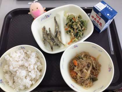 今日の「かみかみ献立」は、きびなごのから揚げです。きびなごは、骨まで食べることができます。から揚げにすることで、さらに噛み応えをアップさせています。今日でかみかみ献立は最後ですが、普段から「噛むこと」を意識して食事ができるといいですね。