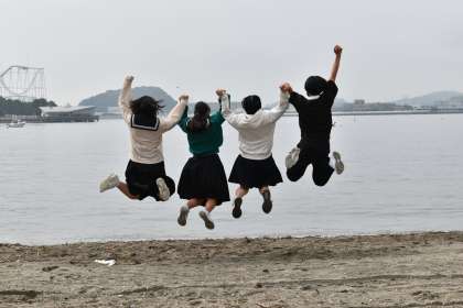 5組のスタートは砂浜から。このあと八景島シーパラダイスです!