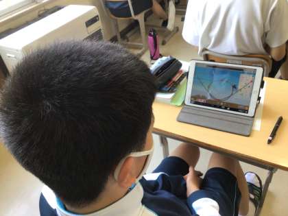 3年生の理科の授業の様子です。位置エネルギーの学習をしていました。学習用タブレットのアプリを活用して、学習を進めていました。