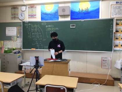 2年3組は学級閉鎖中です。今日も、体調を崩していない生徒のために、オンラインで授業をしています。生徒の反応をタブレットの画面を通して確認しながら進めています。数学科の授業です。