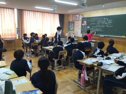 1年生の道徳科の授業の様子です。生まれてきた大切な生命について考えるために、「あふれる愛」という資料を使って授業を進めていました。この資料は、マザー・テレサさんのお話です。