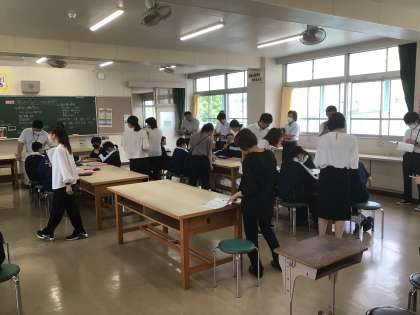 今日は、本校で授業研究を行いました。1年生の家庭科の授業を本校職員と市内の家庭科の先生とが、一緒になって行いました。授業の様子です。