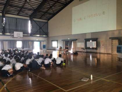 2年生の総合的な学習の時間の様子です。横井写真事務所の方を講師として招き、仕事のやりがいや苦労などを教えていただきました。