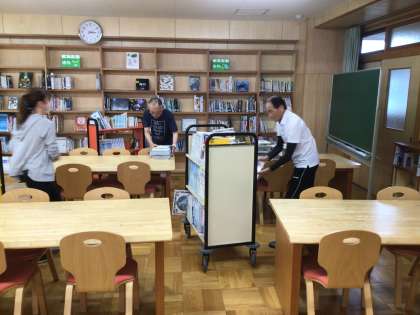 地域コーディネーターの方々と一緒に、本校図書室の蔵書点検をしました。地域コーディネーターの方々には、行事をはじめ、いろいろな場面でご協力いただいています。ありがとうございます。