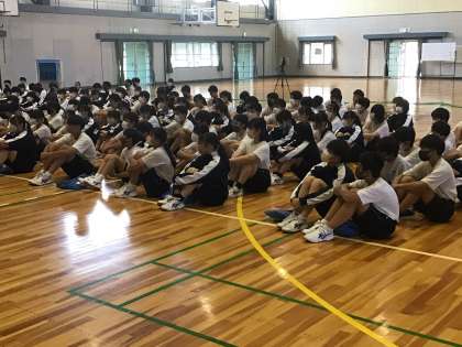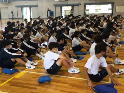 今日から学校生活が始まりました。3年生の学年集会の様子です。9/11(月)から前期期末テストが予定されています。進路関係の話がされていました。