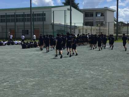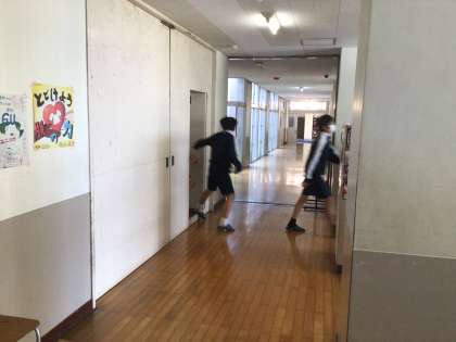 4時間目に避難訓練を実施しました。地震発生後に火災が発生したとの想定で行いました。今日は、校舎内の防火扉を閉めた状態で避難をしました。