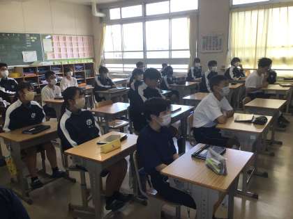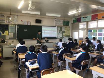 社会科の授業の様子です。今日は、夏休みの思い出を紹介しながら、日本の地理の特色について取り上げていました。